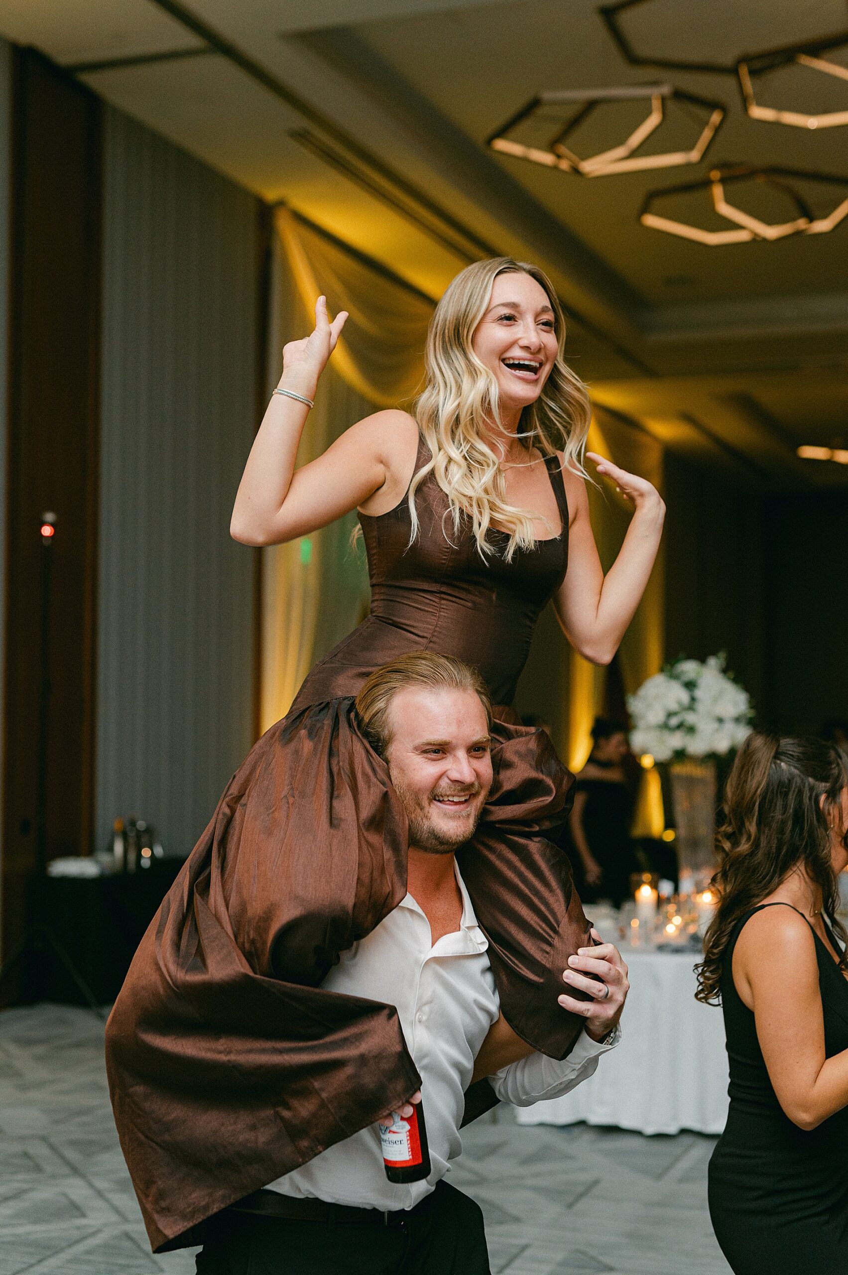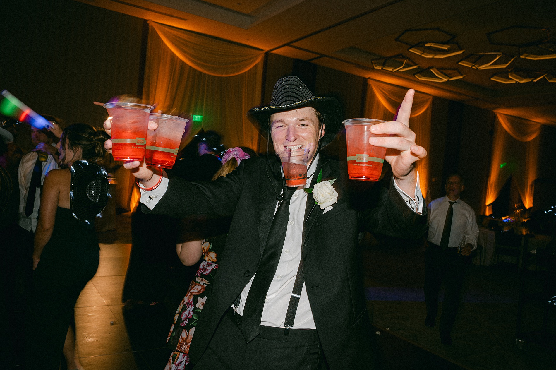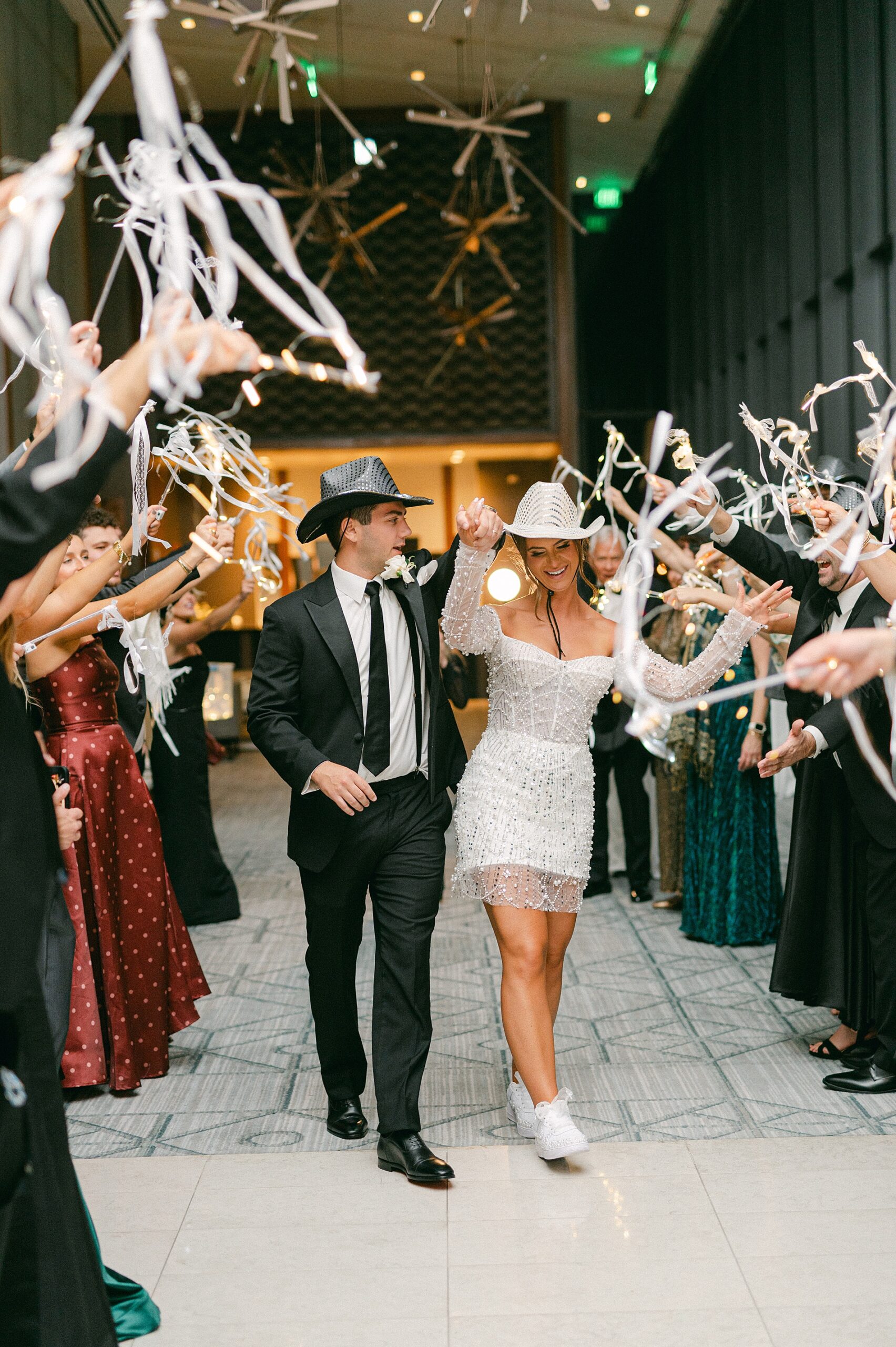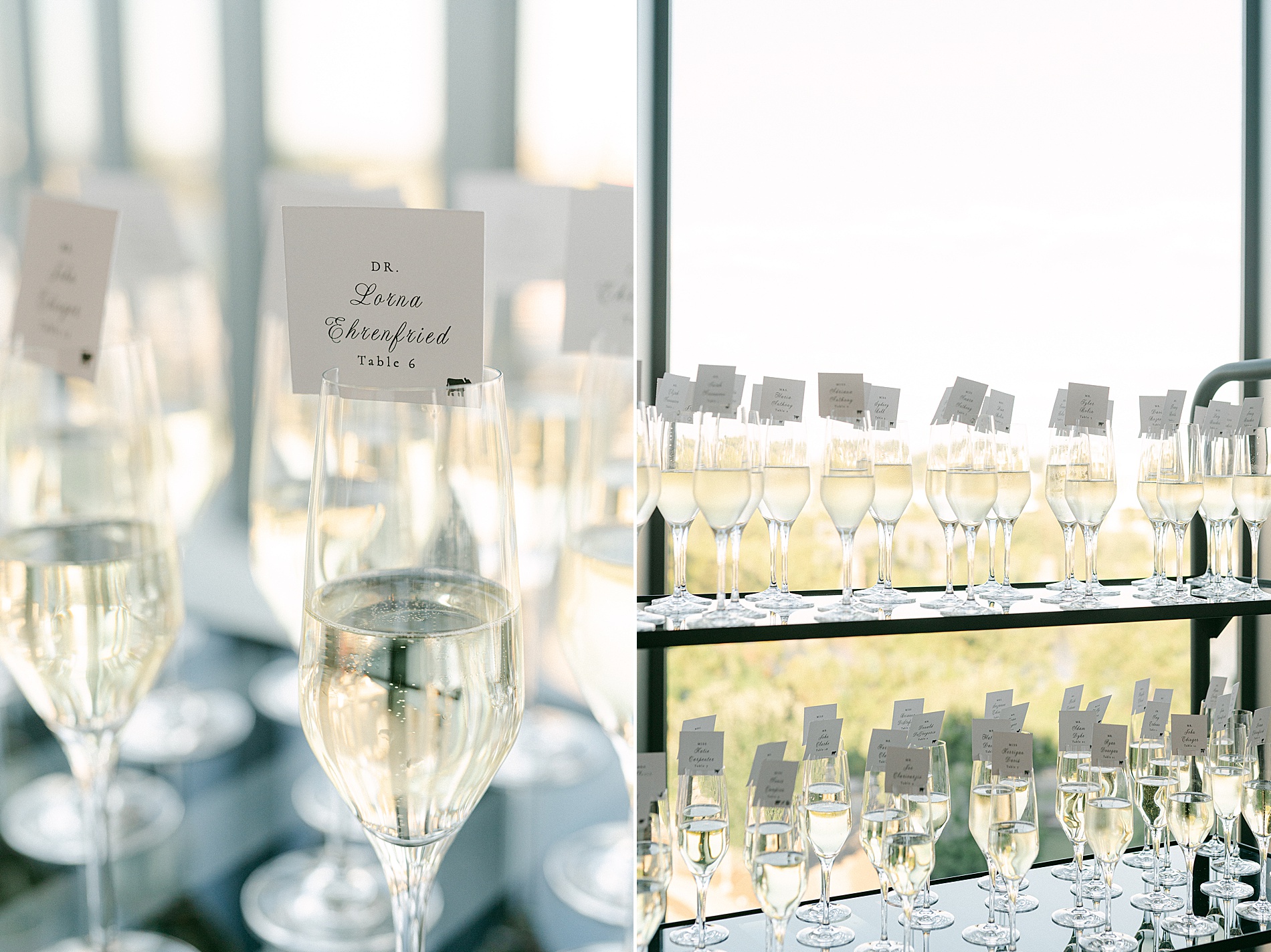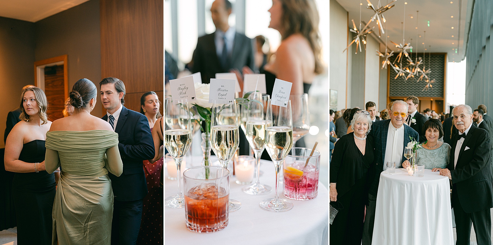 Cocktail hour took place back at the hotel before their reception. The champagne seating chart was such an interactive detail that added an elevated, celebratory touch to the evening. Later in the evening, watching Sophia and Danny celebrate at the Four Seasons with cowboy hats on and the skyline glowing, it felt like the perfect ending to an incredible day.