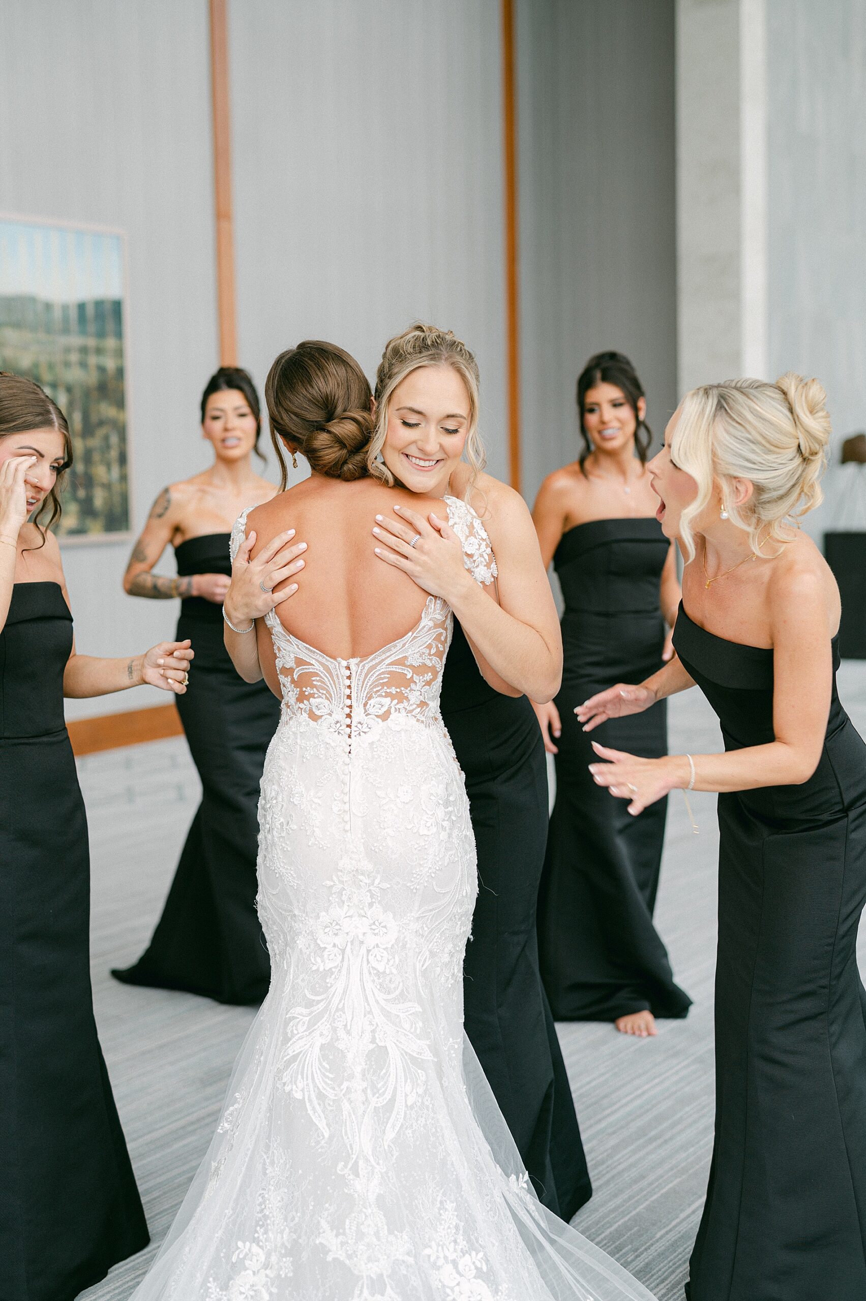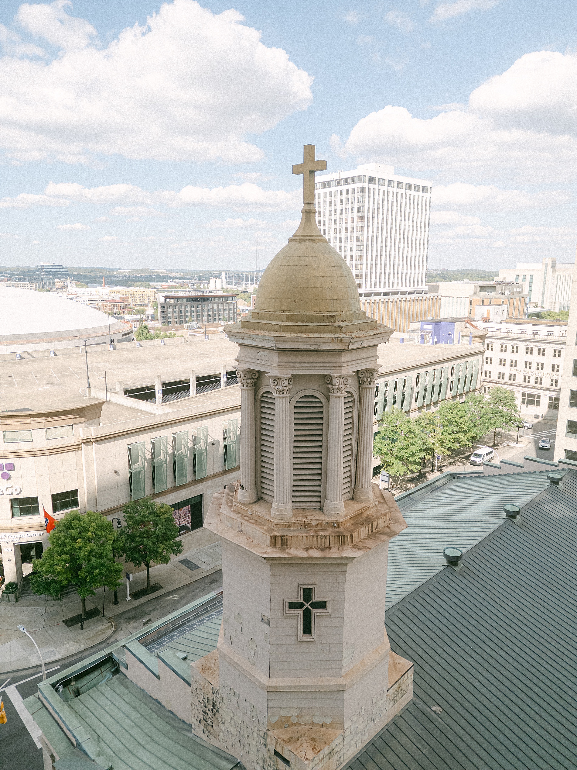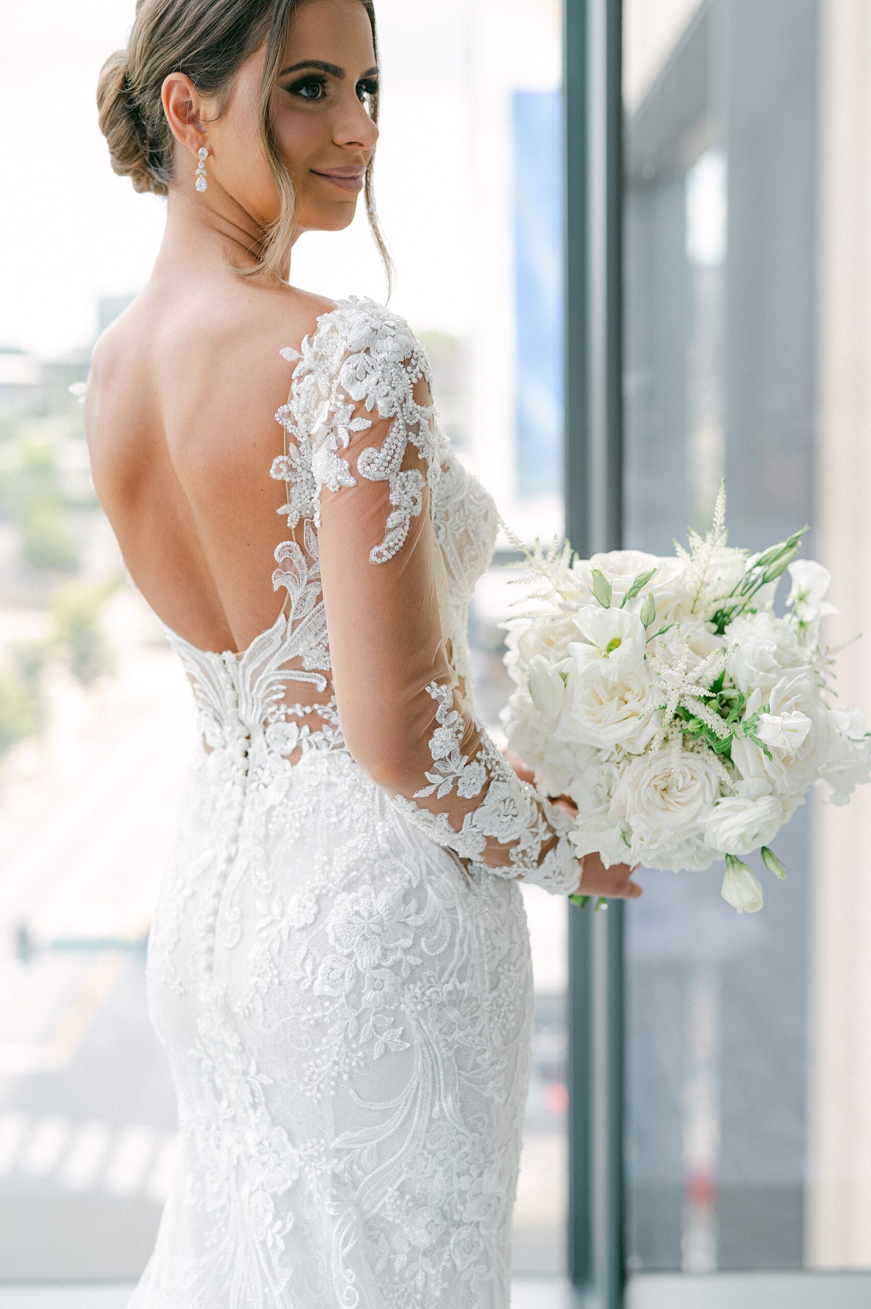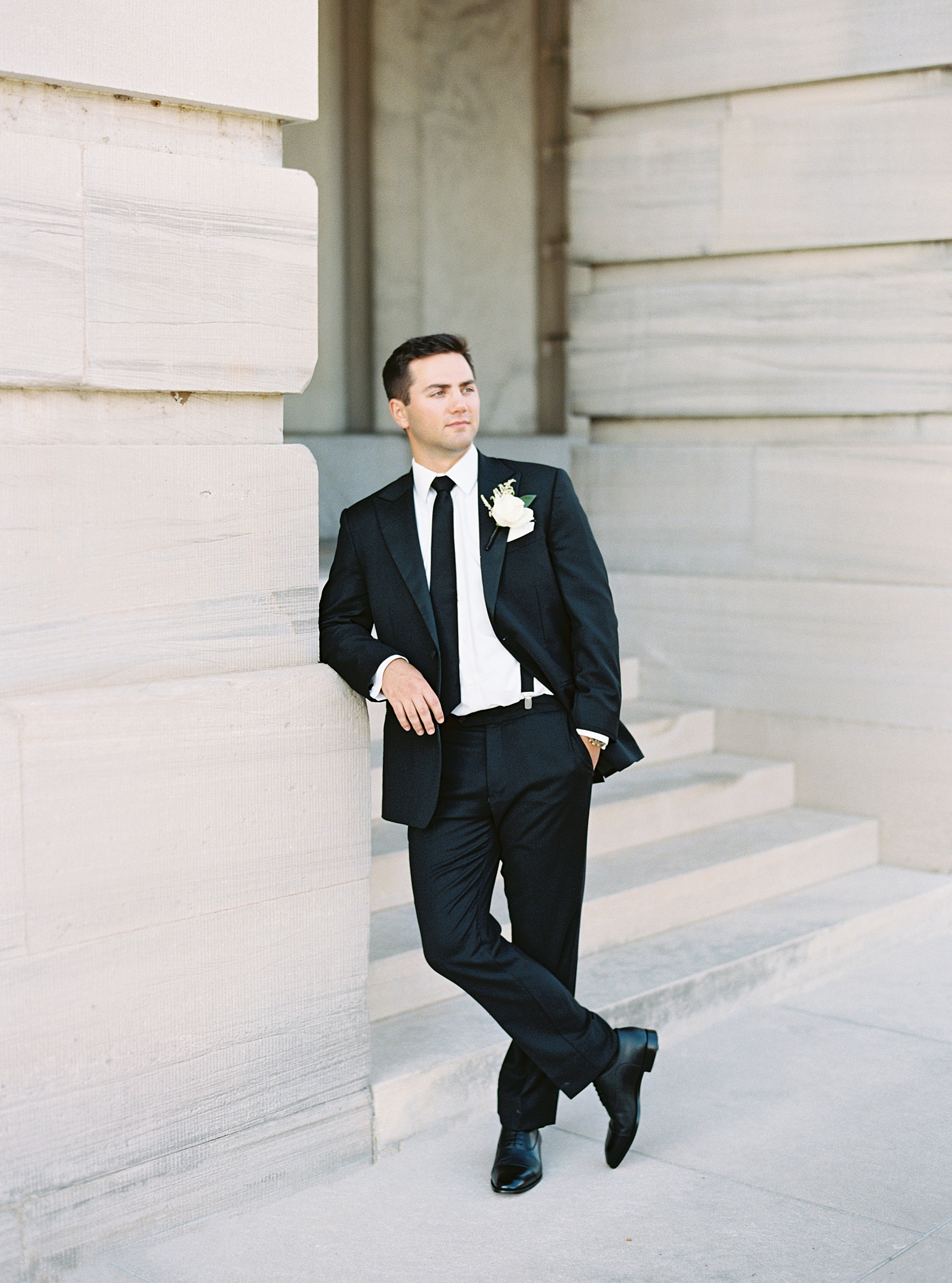 After their meaningful church ceremony we headed out to capture their wedding portraits and wedding party photos. The timeless architecture around downtown Nashville was the perfect backdrop. I love the various images we were able to capture using the stairs and the columns, as it completely elevated their portraits. Sophia looked breathtaking in her gown with a long veil flowing, lace sleeves, and intricate dress details. Watching her and Danny together, after seven years of dating and now finally stepping into marriage, was incredibly special.